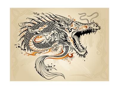 Dragon Doodle Sketch Tattoo Vector Art Print By Misterelements