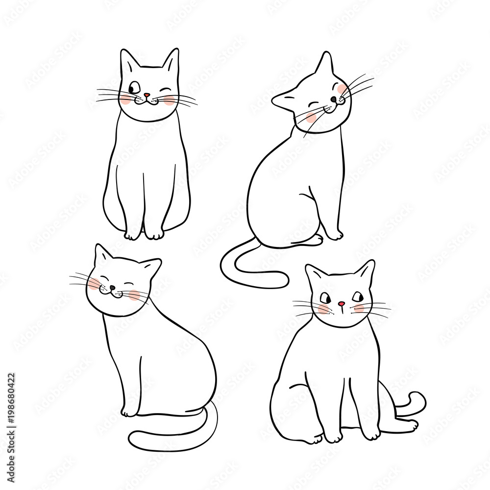 Draw Outline Of Cute Cat Draw Doodle Style Buy This Stock