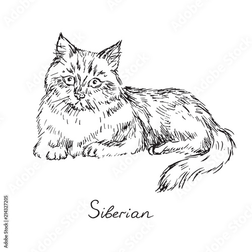 Siberian Cat Breeds Illustration With Inscription Hand Drawn