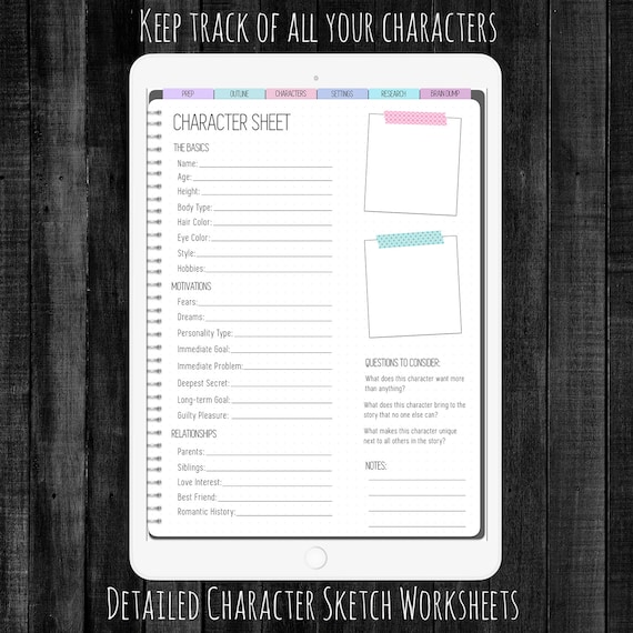 Character Sketch Worksheet Nanowrimo Planner Digital Download