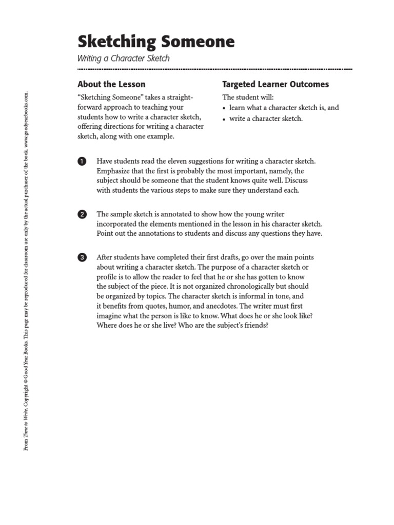 Character sketch guidelines a character sketch is a great way for your student to assess the characters in the literature they are reading or people that they are researching about. Pick character traits first and create a character to match. Then determine their temperament or the 1 or 2 base feelings through which they view life.